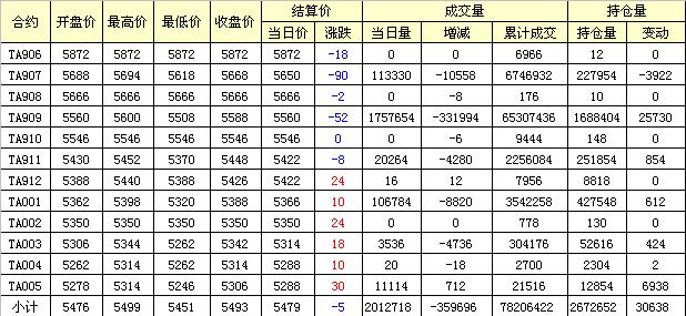 主力TA909合約當日交易走勢