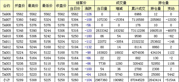 主力TA909合約當(dāng)日交易走勢(shì)