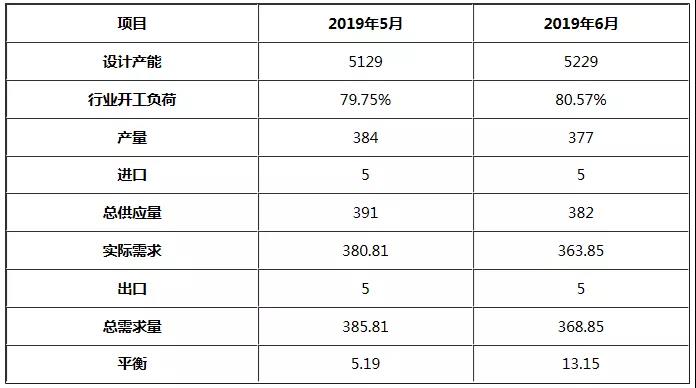 表2 2019年5-6月PTA供需平衡表對比