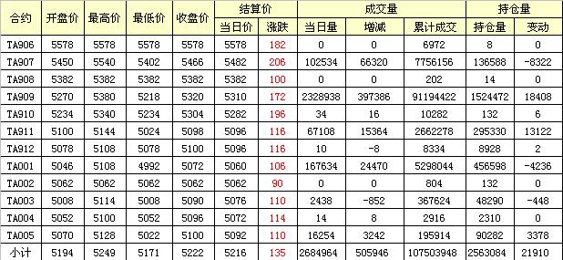 主力TA909合約當(dāng)日交易走勢(shì)