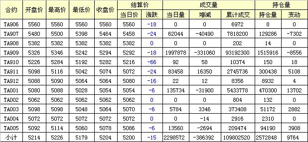 主力TA909合約當日交易走勢