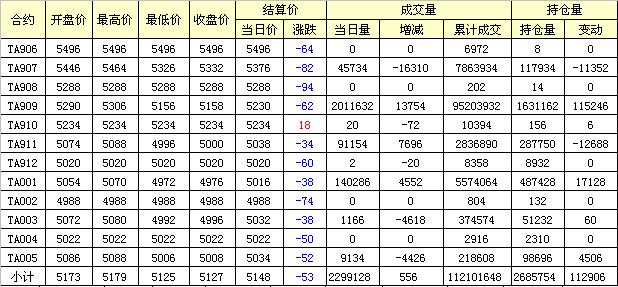 主力TA909合約當日交易走勢