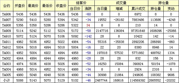 主力TA909合約當(dāng)日交易走勢
