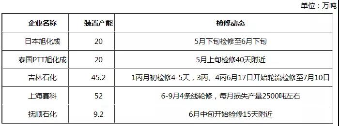 近期部分國(guó)內(nèi)外丙烯腈裝置檢修表
