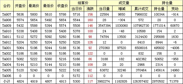 主力TA909合約當(dāng)日交易走勢(shì)