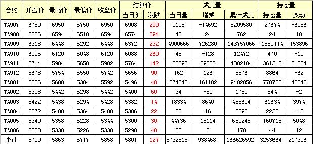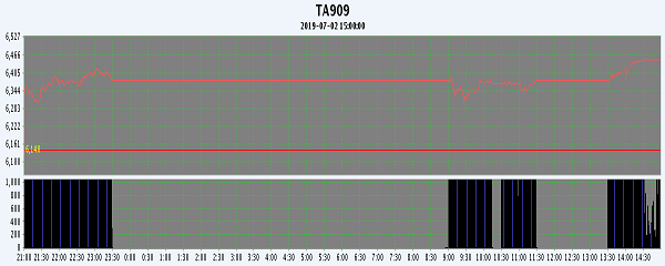 主力TA909合約當日交易走勢