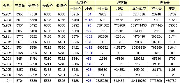 主力TA909合約當(dāng)日交易走勢(shì)