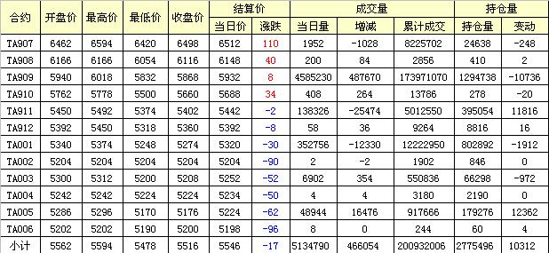 主力TA909合約當(dāng)日交易走勢(shì)