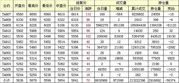 主力TA909合約當日交易走勢