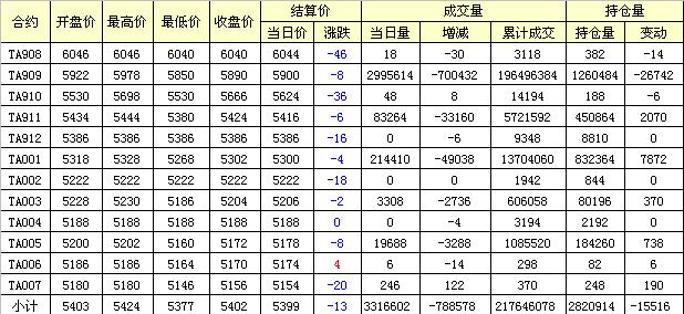 主力TA909合約當(dāng)日交易走勢(shì)