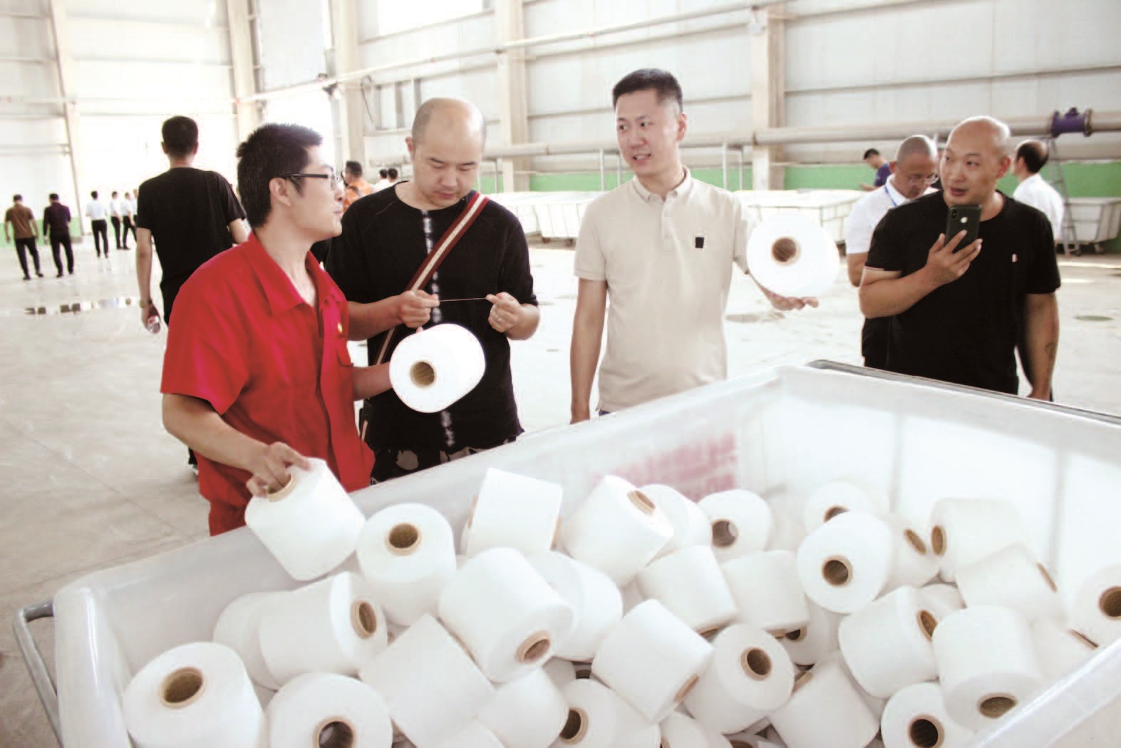 7月26日上午,近百位企業(yè)家在開發(fā)區(qū)管委會工作人員的帶領(lǐng)下,參觀了西北襪業(yè)紡織工業(yè)園項目廠房和生活區(qū)及南疆快遞物流園、新疆利泰絲路投資有限公司、庫爾勒匯同泰印染科技有限公司等企業(yè)。當(dāng)天下午召開座談會。100余名企業(yè)家在座談會上詳細(xì)了解開發(fā)區(qū)的基本情況和招商政策。