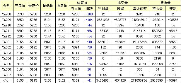 主力TA909合約當(dāng)日交易走勢(shì)