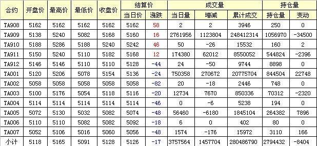 主力TA909合約當(dāng)日交易走勢(shì)