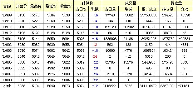 主力TA909合約當(dāng)日交易走勢