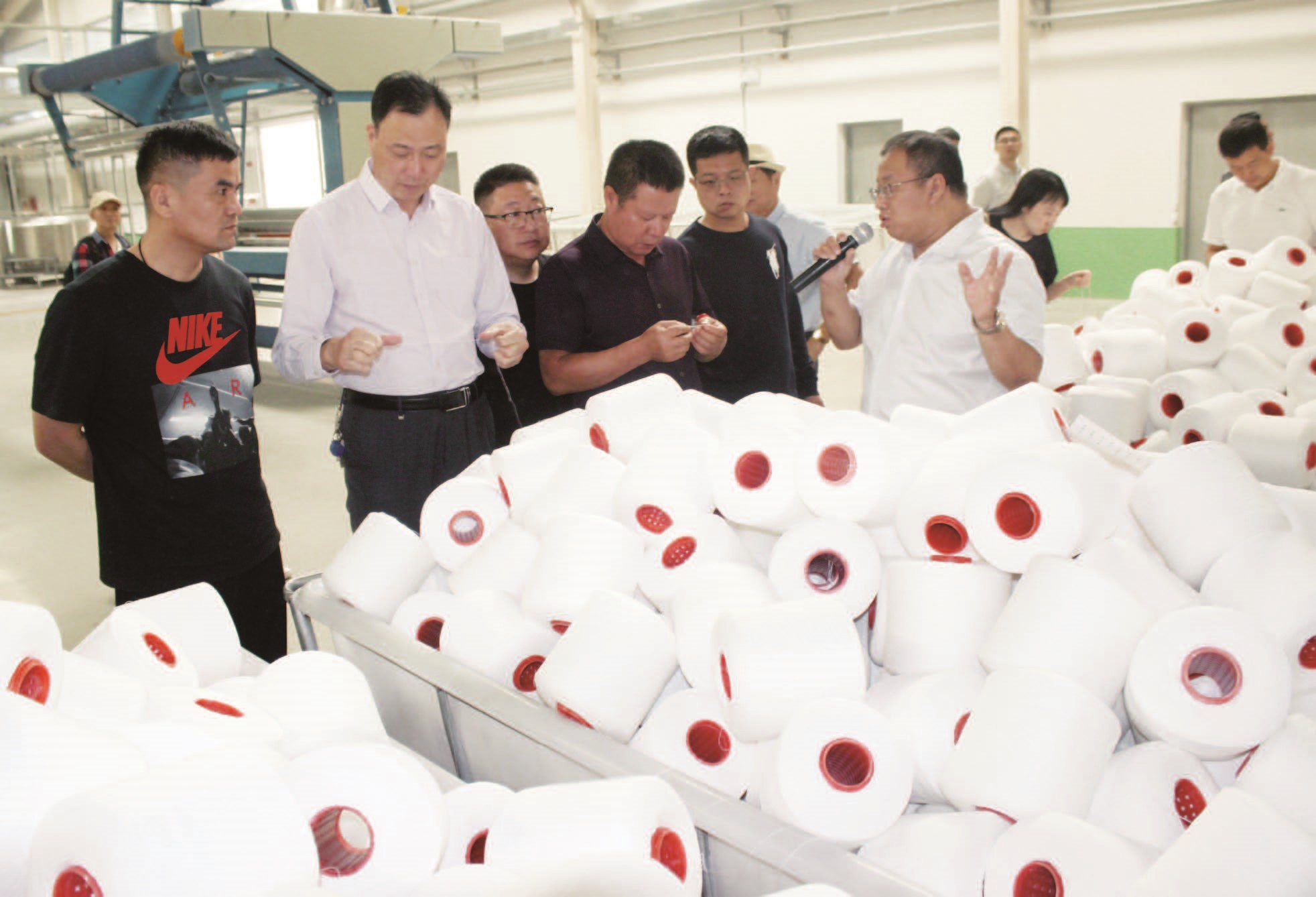 “各位企業(yè)家,你們的左邊就是我們企業(yè)的筒子紗染色機,該套機械是目前世界一流的智能環(huán)保染整裝備,具有短流程、低浴比和清潔生產(chǎn)的特點?!碑?dāng)天襪業(yè)企業(yè)家們參觀開發(fā)區(qū)紡織服裝城內(nèi)的多家紡織服裝企業(yè)。企業(yè)家們實地察看開發(fā)區(qū)紡織服裝產(chǎn)業(yè)發(fā)展情況,詳細(xì)了解巴州的招商引資環(huán)境和區(qū)位優(yōu)勢情況。
