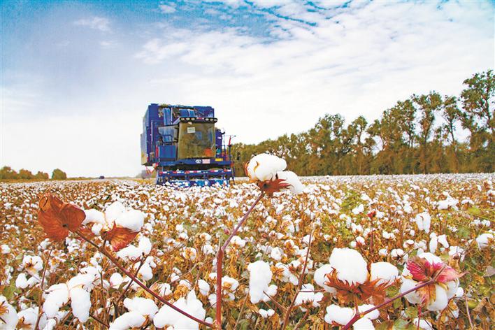 10月8日,二師二十九團二連棉田里,采棉機正在采收棉花。眼下,二師種植的70多萬畝棉花進入采收期。一輛輛采棉機伴著“隆隆”聲響,在田間來回穿梭,進行采棉作業(yè),到處一派繁忙景象。