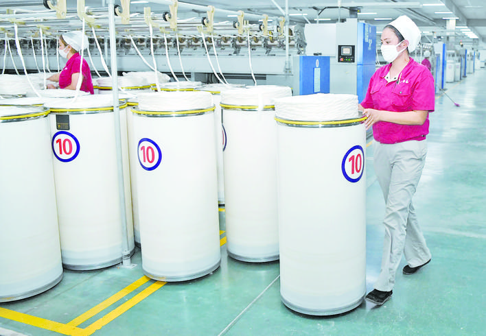 10月27日,阿瓦提縣新疆魯泰豐收棉業(yè)有限責(zé)任公司工人在棉紡廠工作。被稱為“中國棉城”“中國長絨棉之鄉(xiāng)”的阿瓦提縣出產(chǎn)的棉花品質(zhì)優(yōu)良,不僅纖維長度長,還具有強(qiáng)度高、色澤好、彈性好的特點(diǎn),是紡高支紗和特種紡織工業(yè)不可缺少的原料。2019年全縣棉花播種面積147萬畝,其中長絨棉62萬余畝。