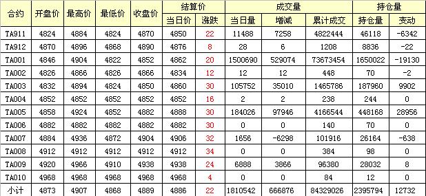 主力TA001合約當(dāng)日交易走勢(shì)