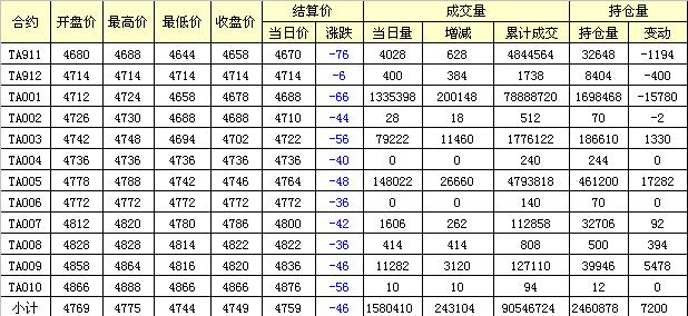 主力TA001合約當(dāng)日交易走勢(shì)