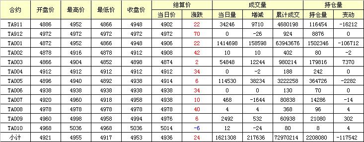 主力TA001合約當(dāng)日交易走勢