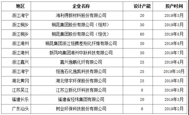 表1 2019年我國聚酯切片新增及重啟產(chǎn)能