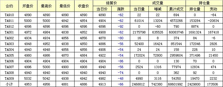 主力TA001合約當(dāng)日交易走勢