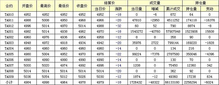 主力TA001合約當日交易走勢