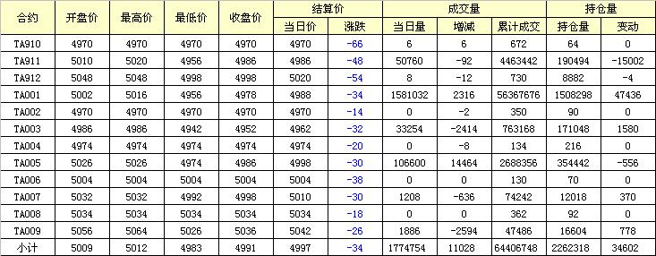主力TA001合約當(dāng)日交易走勢