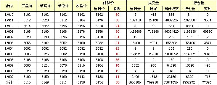 主力TA001合約當日交易走勢