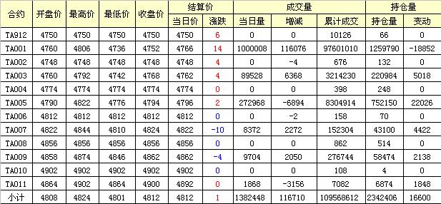 主力TA001合約當(dāng)日交易走勢