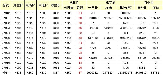 主力TA001合約當(dāng)日交易走勢