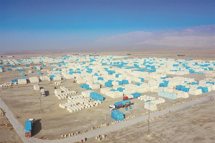 ▲11月28日,在冠農(nóng)匯錦物流園,大卡車正在拉運(yùn)皮棉。