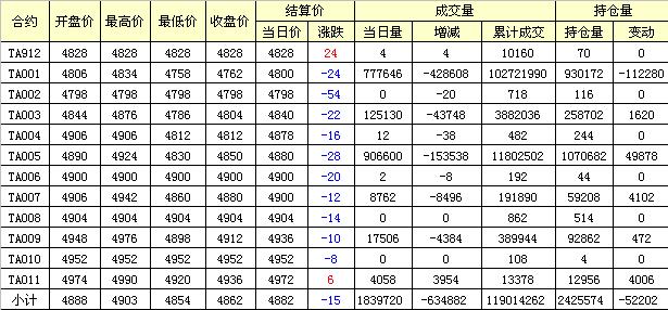 主力TA001合約當日交易走勢