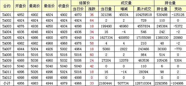 主力TA005合約當(dāng)日交易走勢(shì)