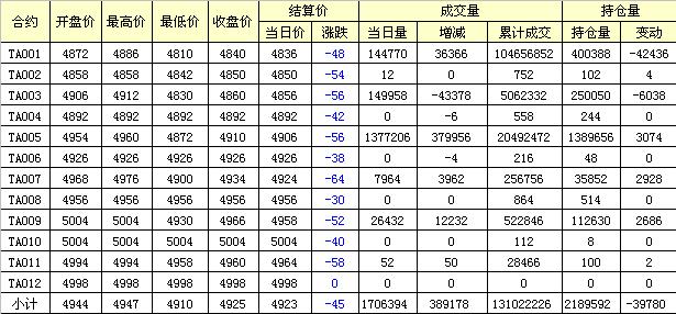 主力TA005合約當日交易走勢