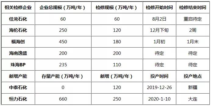 近期PTA供應(yīng)端變化預(yù)期表