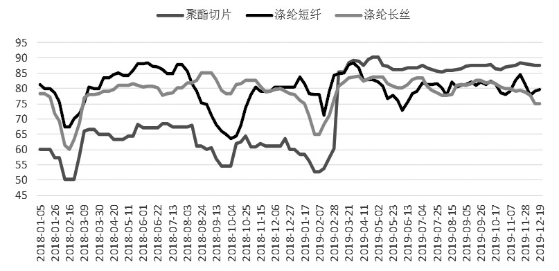 圖為聚酯各品種周度開工率(單位:%)
