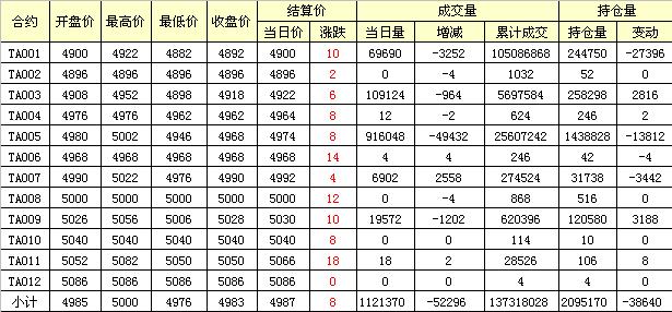 主力TA005合約當日交易走勢