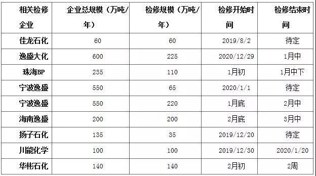 表1 近期PTA裝置檢修計(jì)劃