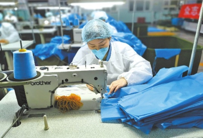 天山紡織副總經(jīng)理劉忠斌說,預(yù)計(jì)每天將幫助樂貝爾生產(chǎn)出500件民用隔離服,用于保障市場(chǎng)供應(yīng)。