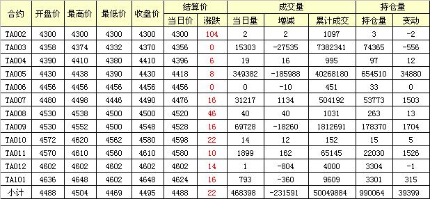 主力TA005合約當(dāng)日交易走勢(shì)