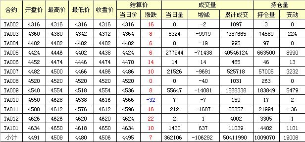 主力TA005合約當(dāng)日交易走勢