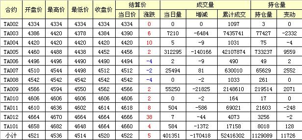 主力TA005合約當(dāng)日交易走勢(shì)
