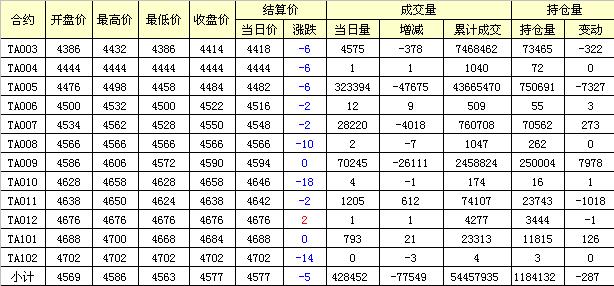 主力TA005合約當日交易走勢
