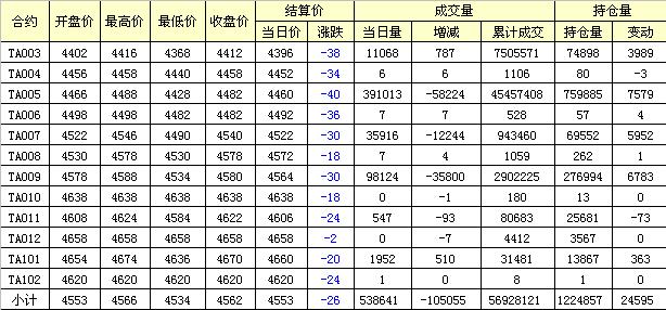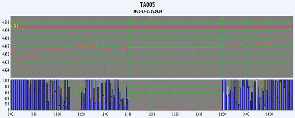 主力TA005合約當日交易走勢