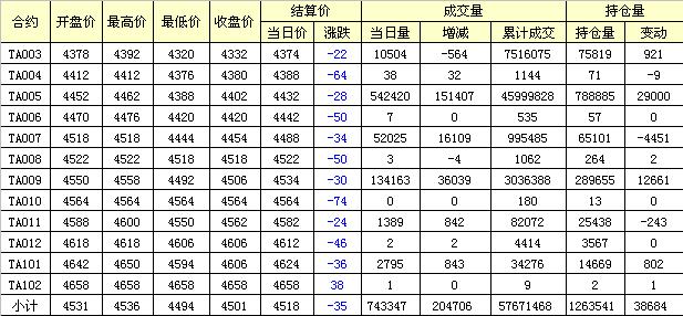 主力TA005合約當(dāng)日交易走勢