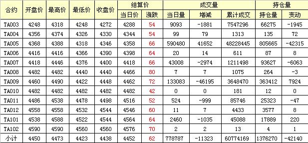 主力TA005合約當(dāng)日交易走勢