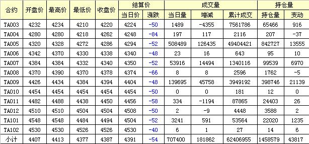 主力TA005合約當(dāng)日交易走勢
