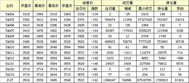 主力TA005合約當(dāng)日交易走勢