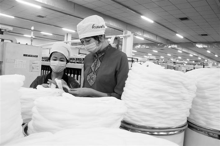 連日來,七師招商引資企業(yè)新疆奎屯錦孚紡織有限公司接納伊犁哈薩克自治州及南疆少數(shù)民族群眾就業(yè)370多人,每人平均月工資4000多元。 圖為3月20日,該公司新員工努爾古力·艾海提(右)在老員工方秀芳的指導下學習紡織操作技術(shù)。